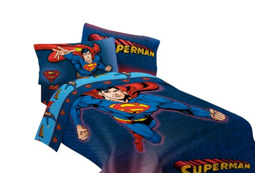Warner Bros 72 by 86-Inch Superman So Super Reversible Microfiber Comforter, Twin/Full